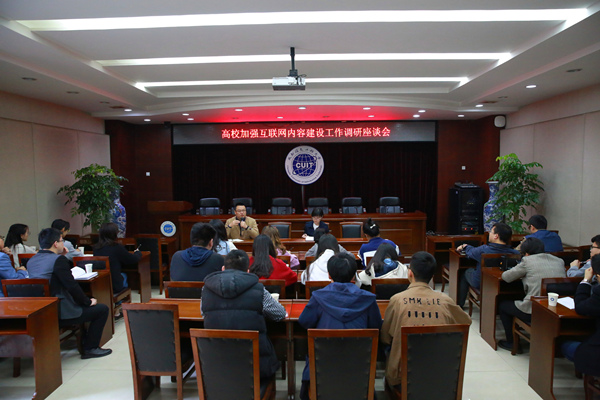 于世祥对调研组成员和参会高校代表的到来表示欢迎。他说,当今互联网已不再是一种工具,更是一种环境。在党的十九大报告中,习近平总书记多次讲到加强互联网建设的问题,提出要从“网络大国”建设“网络强国”,要“加强互联网内容建设”。他认为,高校加强互联网内容建设要进一步加强互联网工作机制和队伍建设,通过多种形式开展网络文明教育,培育提升师生网络安全意识、网络文明素养,引导广大师生争做文明网民,营造天朗气清、生态良好的网络空间。