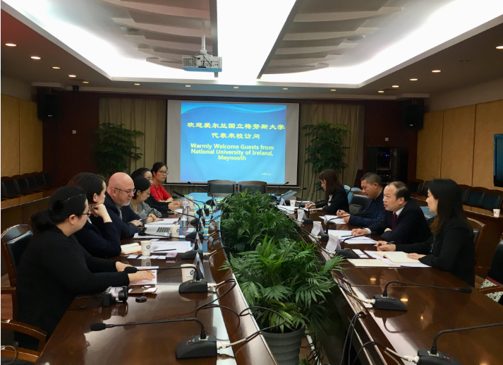 【本网讯】4月9日,国立爱尔兰梅努斯大学(Maynooth University)副校长Ronan Reilly、国际处官员Helen Kirrane、市场推广部主任李欣杨一行来校交流访问。学校副校长何建新,计算机学院院长何嘉、国际交流与合作处相关人员与Ronan Reilly一行在行政楼第七会议室召开了交流会议。会议由国际交流与合作处副处长刘伟主持。