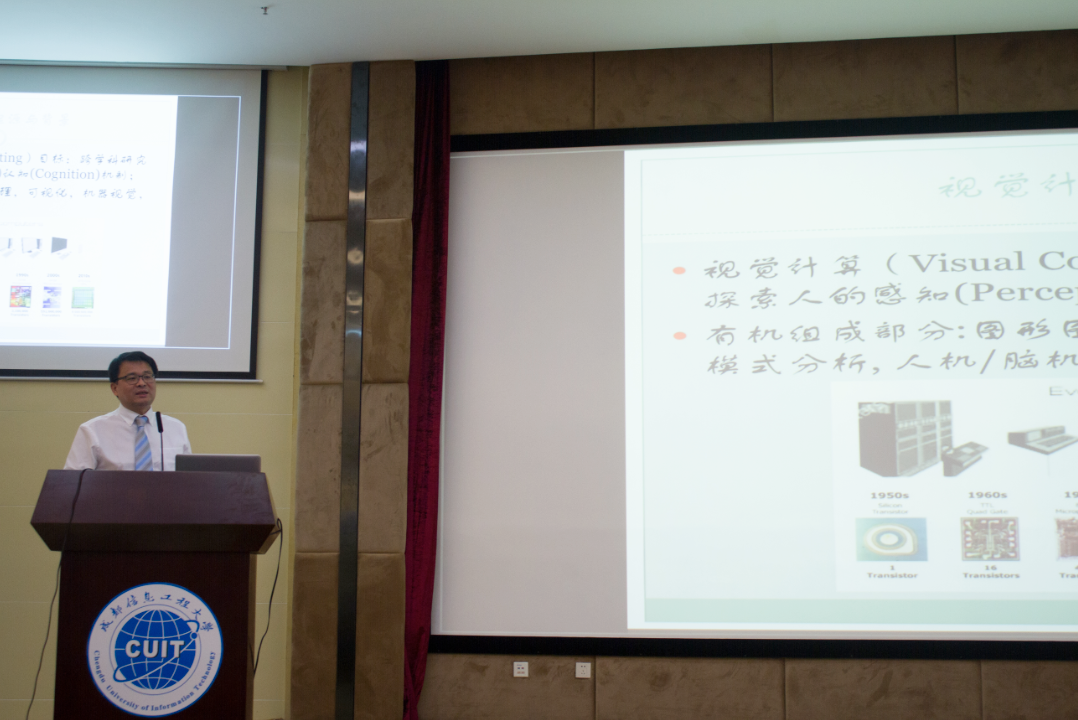 许志杰作题为“History and Emerging Trends in Visual Computing”的报告。他分享了视觉计算的历史、发展趋向和其现实意义。他说,该技术被广泛应用于手机APP中,如抖音、王者荣耀等,运用此技术可有效增加用户体验度。