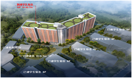 第21栋学生宿舍项目规划总建筑面积28000平方米,地上12层,地下1层(局部),建成后将容纳2500名学生学习生活,并提供自助洗衣、自助服务、自习室等服务功能,预计2019年9月建成投入使用,届时将较好改善乐动学生的住宿环境和住宿条件。