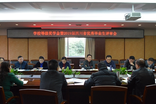 学生工作处副处长陈智勇汇报了2017-2018学年本科生校级奖学金、四川省优秀毕业生评选情况。学校评审领导小组对拟推荐人选进行了审议和评选。学校评审领导小组成员同意并通过了李涵等7993名同学为校级奖学金拟获得者,任远刘瑞等52名同学为2019届四川省优秀本科毕业生拟推荐人选,盛志忠等4名同学为2019届四川省优秀毕业研究生拟推荐人选。