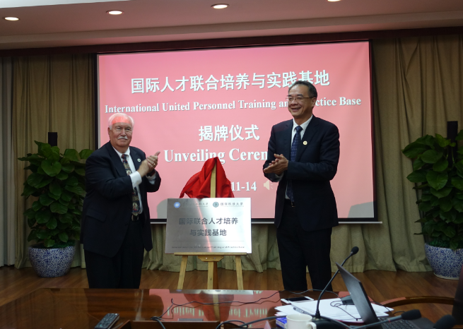 双方代表签署了《乐动在线登录与美国国际科技大学合作谅解备忘录补充协议》,并举行了两校国际人才联合培养与实践基地揭牌仪式。