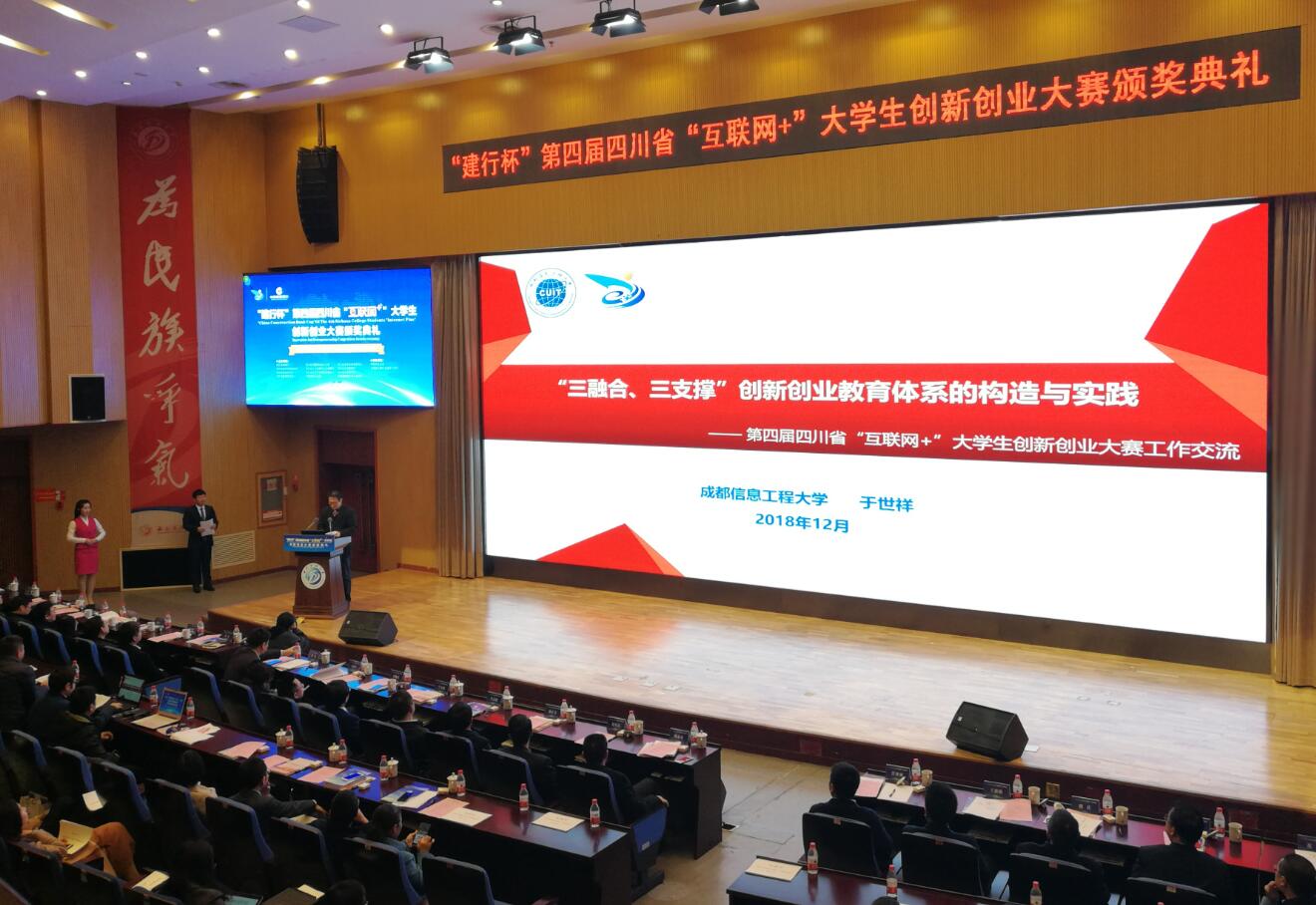 【本网讯】12月20日上午,第四届四川省“互联网+”大学生创新创业大赛颁奖典礼在西南石油大学举行。学校副校长于世祥应邀参加大会,并代表乐动作创新创业教育工作经验交流发言。学校教务处、校团委相关负责人及获奖师生代表参加了颁奖典礼。