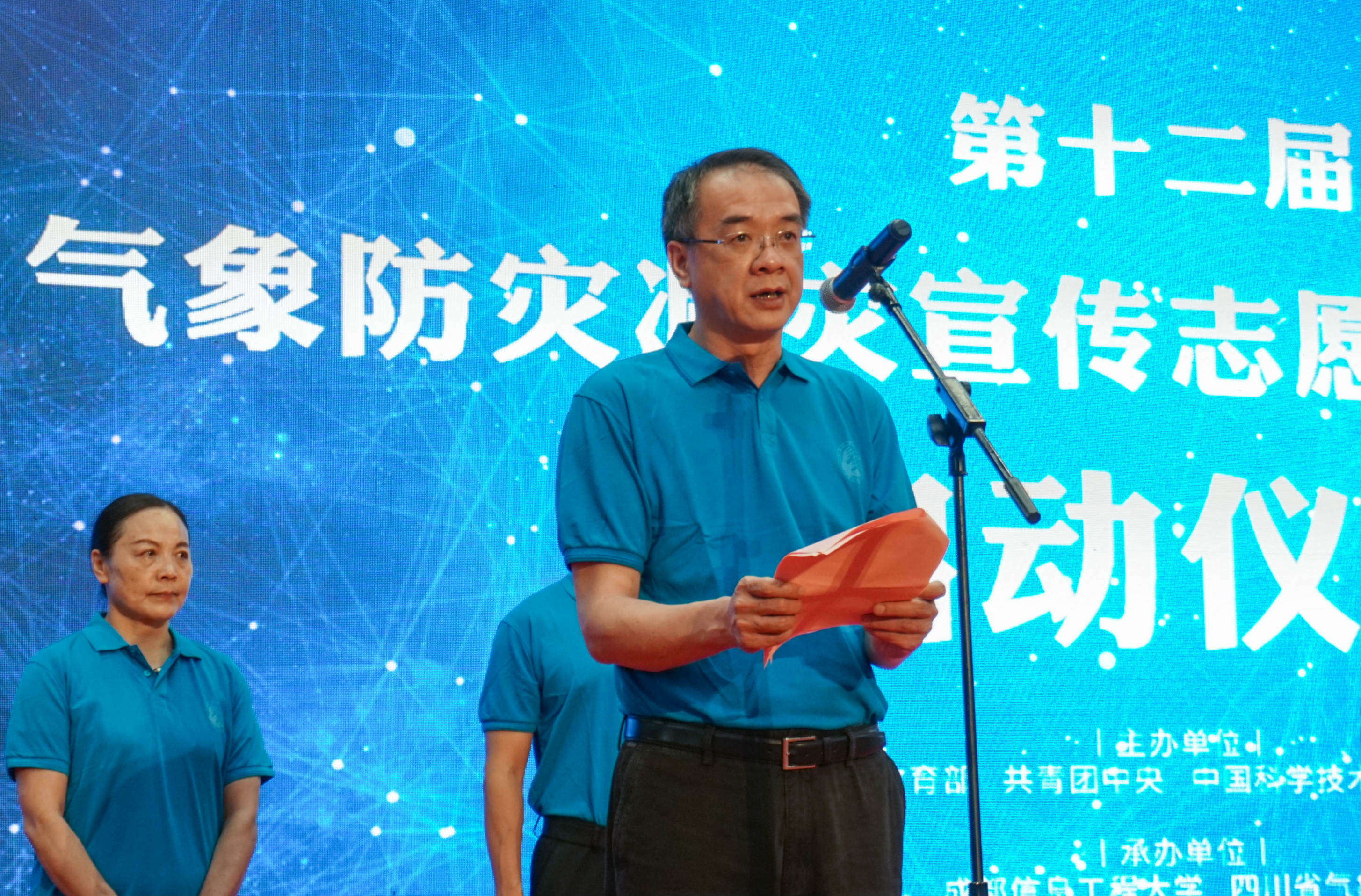 余敏明在致辞中谈到,由乐动发起的,融合气象、教育、志愿者、科普等诸多元素的“气象防灾减灾宣传志愿者中国行”气象科普活动已经成为具有代表性和全国影响力的高校志愿者文化品牌活动,成为普及气象防灾减灾知识、提升国民应对气象灾害的意识和能力、提高全民科学素养的有效形式和途径,为推动我国的气象防灾减灾事业发展、促进国民经济和社会事业健康发展提供了有力支撑。他希望同学们以舍我其谁的勇气和昂扬的精神状态,继续书写报效祖国、服务人民、成就自我的人生华章。他表示,成信大一定会全力以赴做好各项服务保障工作,不断加强与各界的协同创新,搭建良好的合作发展平台,努力为国家气象事业发展和气象防灾减灾工作做出更大贡献。