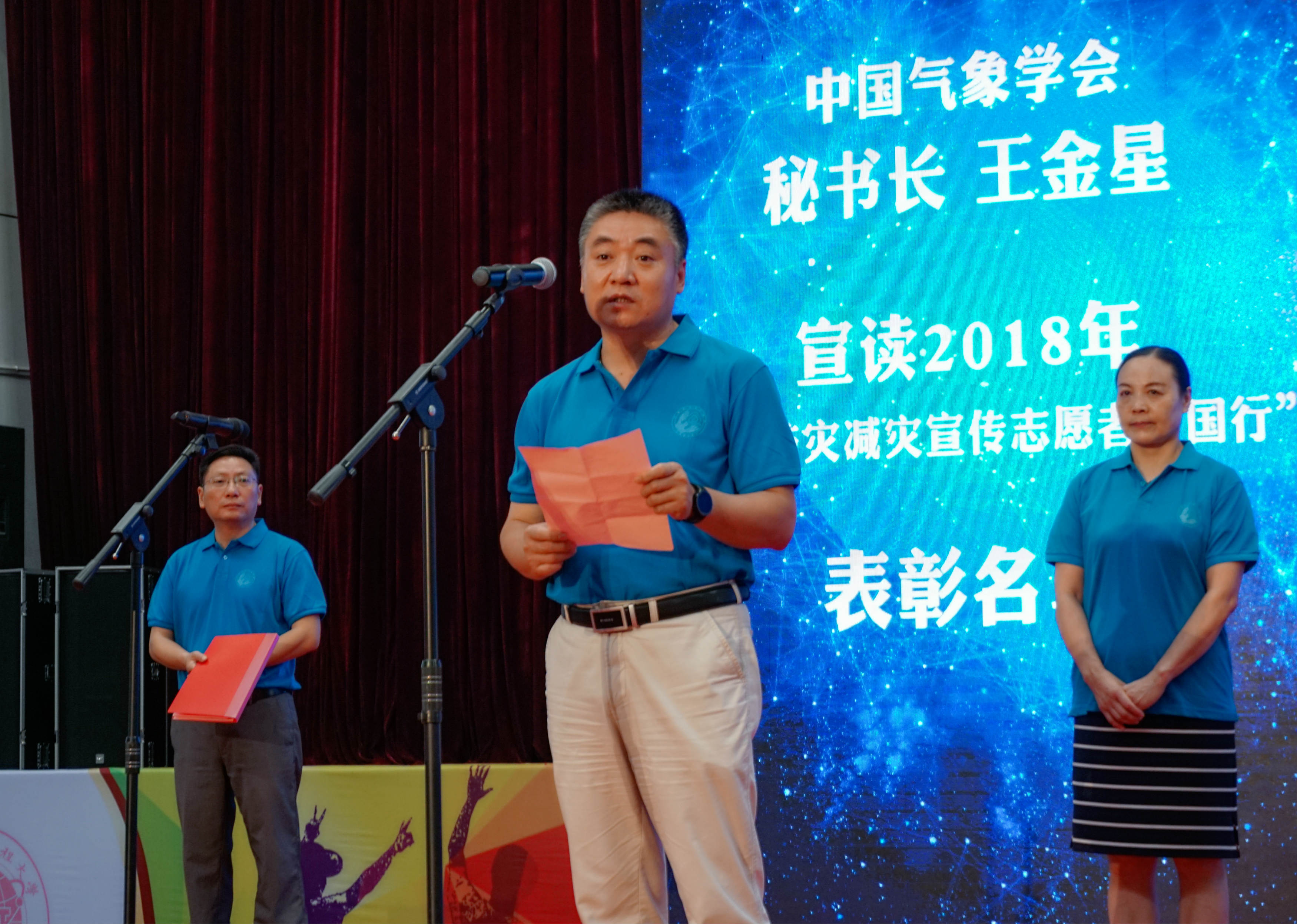 王金星宣读了2018年“气象防灾减灾宣传志愿者中国行”活动评优表彰名单。乐动在线登录—成都A队、东北农业大学—中国气象行团队、四川农业大学—将计就计团队、兰州大学—中国气象防灾减灾科普宣传队重庆分队等分别获得2018年“气象防灾减灾宣传志愿者中国行”活动最佳报告奖、最佳文字记录奖、最佳影像记录奖、最佳创意奖和一二三等奖团队等奖项。乐动在线登录、南京信息工程大学、兰州大学、东北农业大学、四川农业大学获得优秀组织单位荣誉。参会领导为获奖团队和优秀组织单位颁奖。