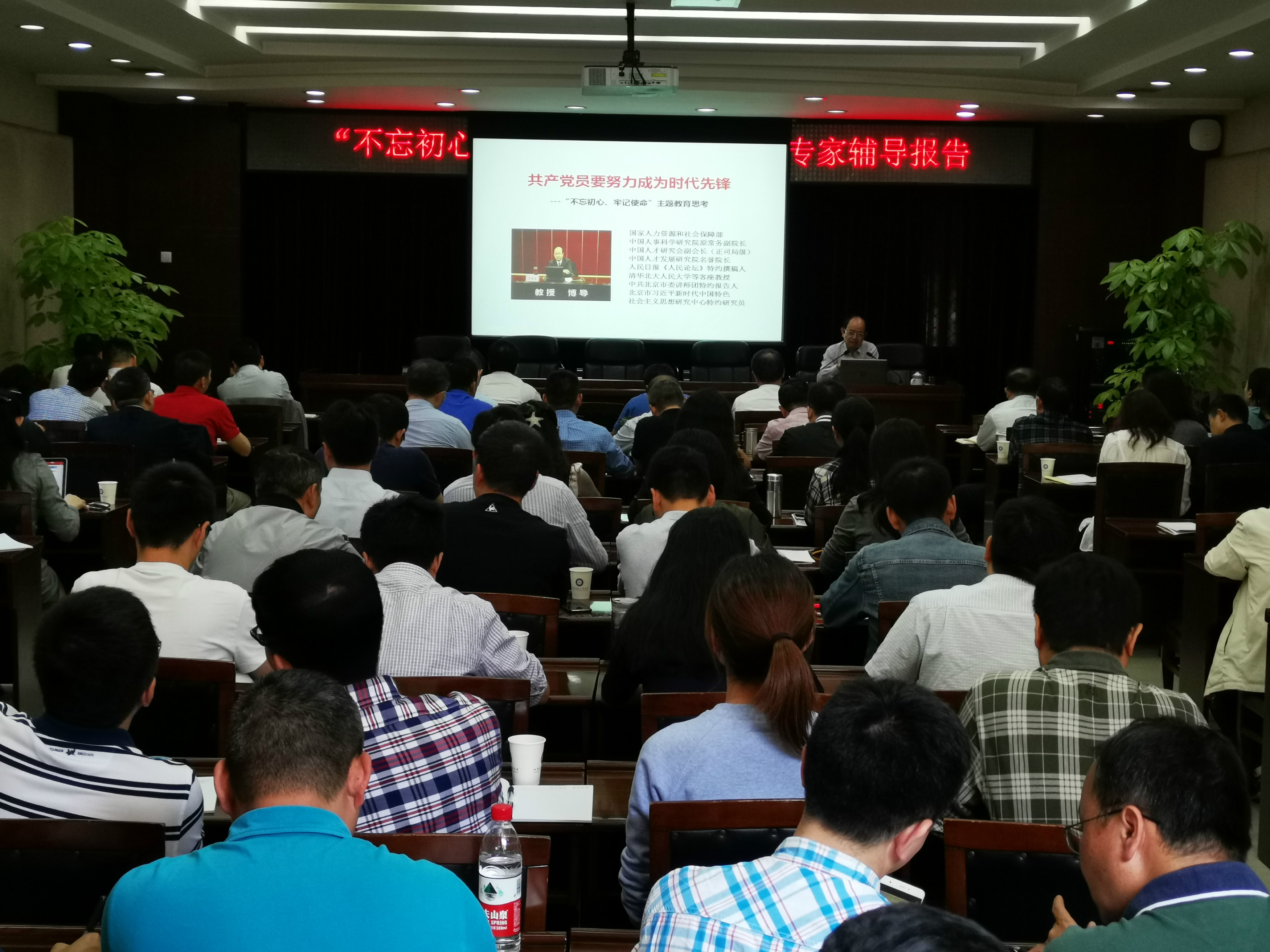 【本网讯】9月25日下午,学校举办了“不忘初心、牢记使命”主题教育专家辅导报告会,特邀国家人力资源和社会保障部中国人事科学研究院原常务副院长、中国人才研究会副会长吴德贵教授来校作专题辅导报告。全体中层以上领导干部参加了报告会,会议由学校党委书记周激流主持。