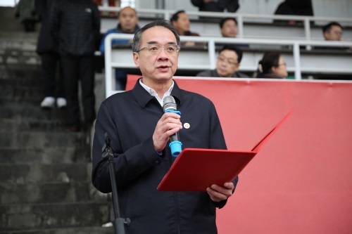 【本网讯】11月29日上午,学校2019年田径运动会在航空港校区第二运动场开幕。开幕式由党委副书记马洪江主持。