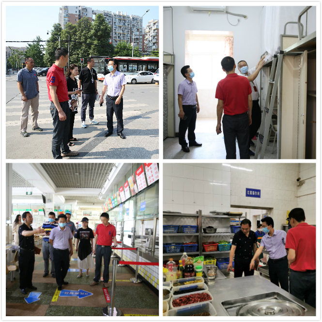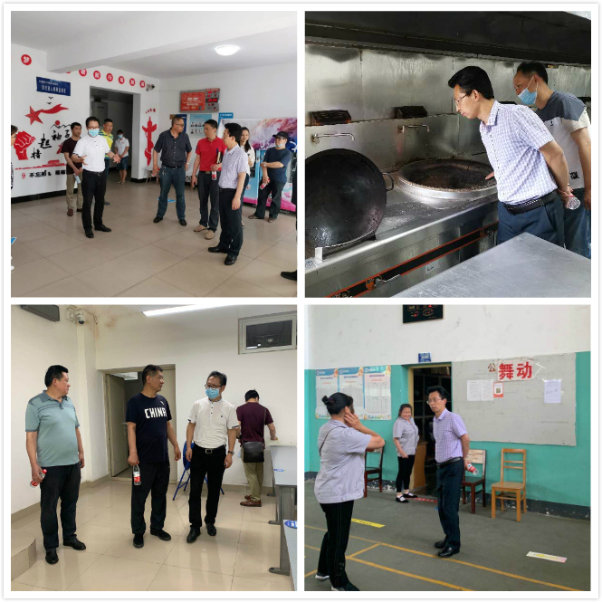 校领导一行先后来到学校大门口、学生宿舍、学生食堂、校园超市、教职工餐厅、运动场馆、教室等场所进行了细致走访和查验,并对学校大门口和家长休息区的布置、物品准备、学生宿舍卫生消杀、食堂库房、备料间、操作间的卫生消杀、食品卫生安全、台帐建立与监督、校园环境等事项提出了一些改进措施。