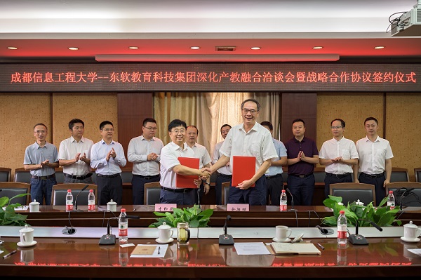 【本网讯】为进一步加强校企合作,深化产教融合,助推学校内涵发展,8月20日,东软教育科技集团副总裁李印杲一行5人到访乐动,与学校校长余敏明、副校长何建新等进行洽谈,并签署深化产教融合战略合作协议。