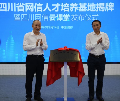 仪式上,中央网信办培训中心主任孙爱萍与四川省委宣传部副部长、省委网信办主任房方为四川省网信人才培养基地揭牌。省委网信办副主任胡卫东、国家计算机网络与信息安全管理中心四川分中心主任董焰为四川网信“云课堂”揭牌。