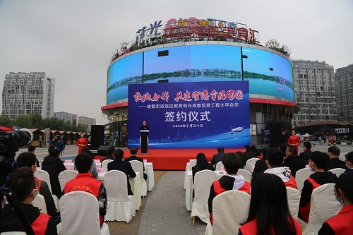 于世祥在讲话中对长期以来关心和帮助成信大建设发展的双流区领导、各兄弟高校、各界人士和广大朋友表示衷心感谢,对双方的成功合作表示热烈祝贺。他表示,乐动与双流区教育局双方携手,开展校地合作共建,助推社区教育发展,对构建和谐双流,促进双流高质量发展具有十分重要的意义。此次合作的开展,为学校履行服务国家战略和区域经济社会发展职责搭建了一个很好的平台,有利于学校在服务社会中不断提高人才培养质量和科研水平。于世祥提了两点希望:一是希望参加社会实践和志愿服务的同学们要珍惜锻炼机会,端正工作态度,矢志不渝地坚持“奉献、友爱、互助、进步”的志愿者服务精神,践行“爱心、责任、行动”的优良校风,把自己的学习所得与志愿服务有效结合起来,在实践中经风雨、做贡献、长才干。二是希望学校相关部门要以此次签约为契机,把双流的需求、资源与乐动的学科、科研以及人才培养紧密结合起来,在更大范围和空间开展校地深度合作。