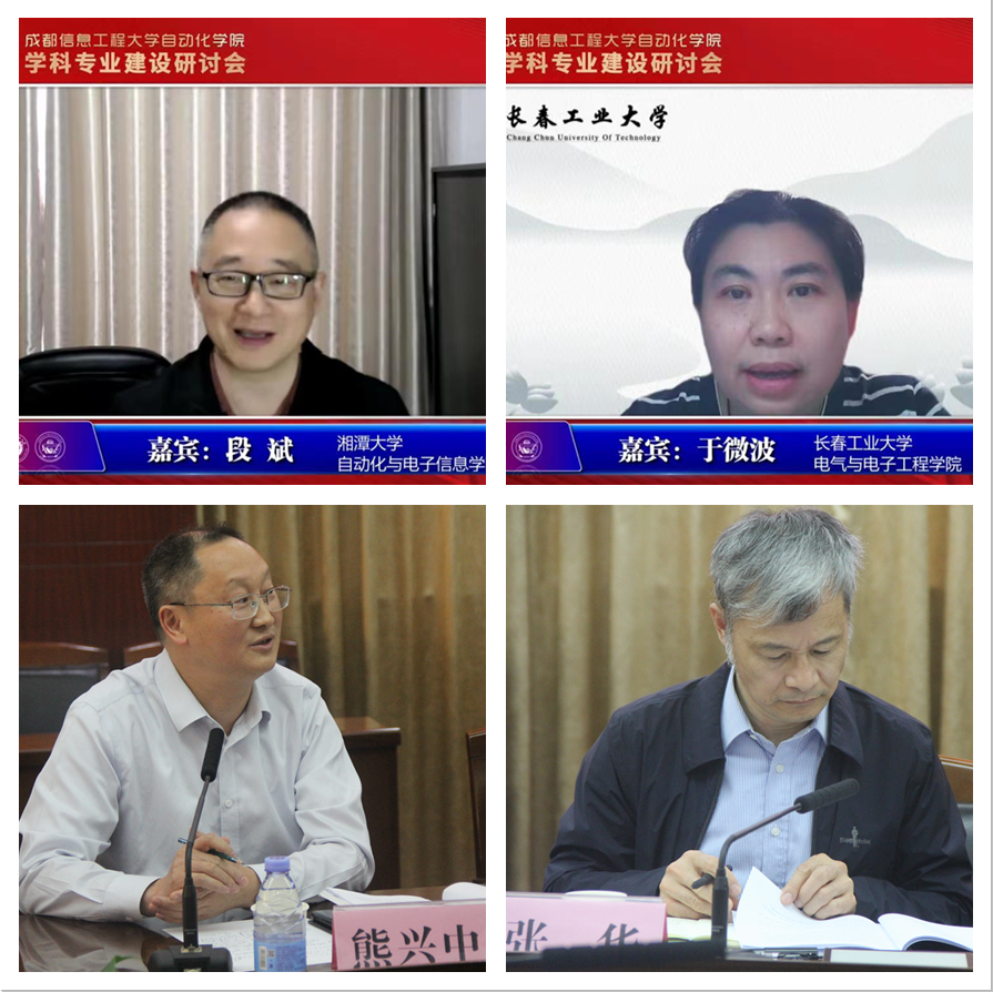当日下午,学科专业建设研讨会在行政楼七会议室举行,于世祥主持会议。张葛祥就学院学科专业建设情况作汇报;湘潭大学自动化与电子信息学院博导段斌教授、长春工业大学电气与电子工程学院于微波教授、西南科技大学信息工程学院院长张华教授、四川轻化工大学自动化与信息工程学院院长熊兴中教授等校外专家作主题发言;企业代表及校友代表从企业需求与专业人才培养关系方面发表了见解;研究生处处长陈权亮就学院学科发展提出建议。与会领导、专家、企业和校友代表结合学院学科专业建设现状和问题以及“十四五规划,主要就课程建设、人才队伍、研究生教育、工程专业认证等提出了宝贵建议。