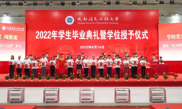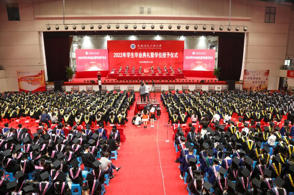 【本网讯】又是一年六月天,仲夏时节的成信大校园,有栀子的清香,也弥漫着离别的伤感。6月14日上午,学校在航空港校区体育馆隆重举行2022年学生毕业典礼暨学位授予仪式。全体在校校领导,学校学位评定委员会成员,学校二、三级教授,校友代表,相关职能部门负责人,各学院领导、毕业班辅导员,2022届四川省优秀毕业生、校级优秀毕业生以及2020届毕业生代表等1000余人参加了毕业典礼暨授位仪式。学校党委副书记马洪江主持毕业典礼。