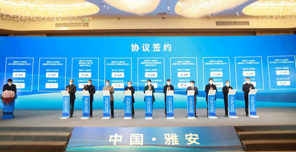雅安市委副书记、市长彭映梅与9所市校(院所)签署了合作协议。马洪江代表乐动和雅安市人民政府进行了签约。