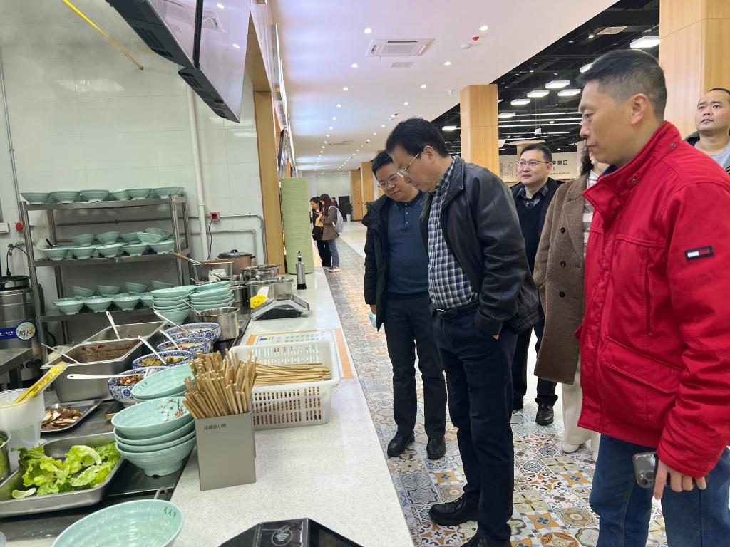 在杏苑餐厅,周激流一行查看了食堂大厅、操作间、售卖区等重点区域的环境卫生及物资准备情况,并详细询问了菜品的种类、价格。他要求,各售卖窗口要认真落实食品安全管理制度和疫情防控要求,要加强食堂从业人员健康管理和技能培训,必须严格做好环境卫生,确保食品安全,做到环境干净、整洁、有序,确保食材新鲜、可靠,原材料采购规范。