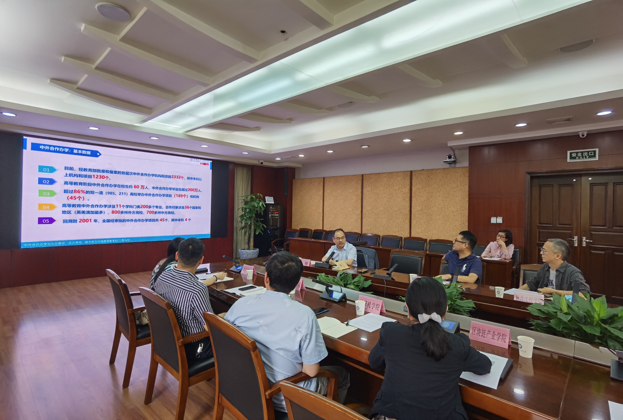 何曜围绕“中外合作办学对高校国际化发展的重要意义及其高质量运行与评估”主题作了讲座,分享了吉林大学-莱姆顿学院在中外合作办学方面的探索实践与创新经验。讲座由国际交流与合作处处长许源平主持,各学院国际化分管领导、国际干事参加。讲座结束后,许源平介绍了学校国际化办学和发展近况,以及学校中外合作办学项目申报工作进展,与会人员与何曜就中外合作办学非独立法人机构的运营和管理、专业设置、课程引入以及教材选用等方面的问题进行了深入交流与探讨。
