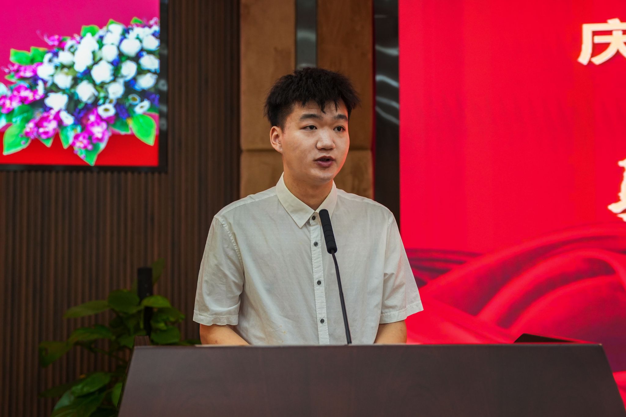 区块链产业学院优秀学生代山琅作为学生代表发言,他对全体教职工的无私奉献和学校的精心培养表示感谢,对全校教师员工表达了节日祝福和敬意。他表示,将铭记“成于大气,信达天下”的校训,追求真理,博学笃行,努力学习专业知识,用成就回报母校,回报社会,为实现中华民族的伟大复兴而努力奋斗,为华夏的富强而不懈努力。