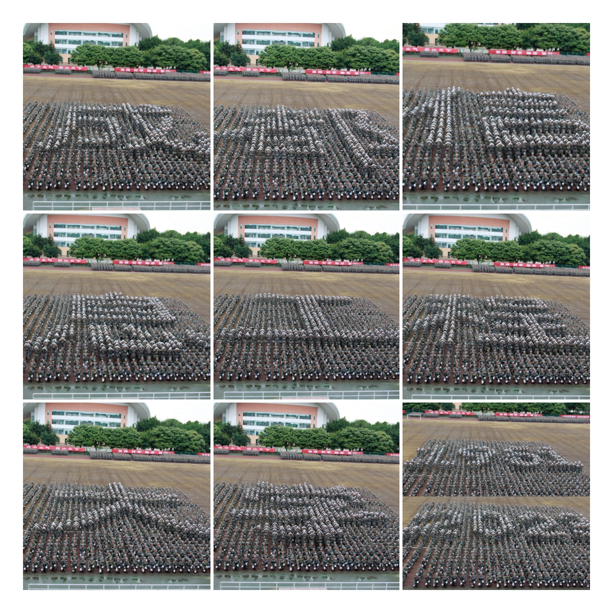 同学们行云流水地变换队列,摆出“乐动在线登录”“1951-2023”“战斗机”等大气磅礴的图案,表达了成信学子对祖国的热爱以及对学校的祝福,展现了2023级学子锐意进取、追求卓越的精神风貌和军事训练的丰硕成果。