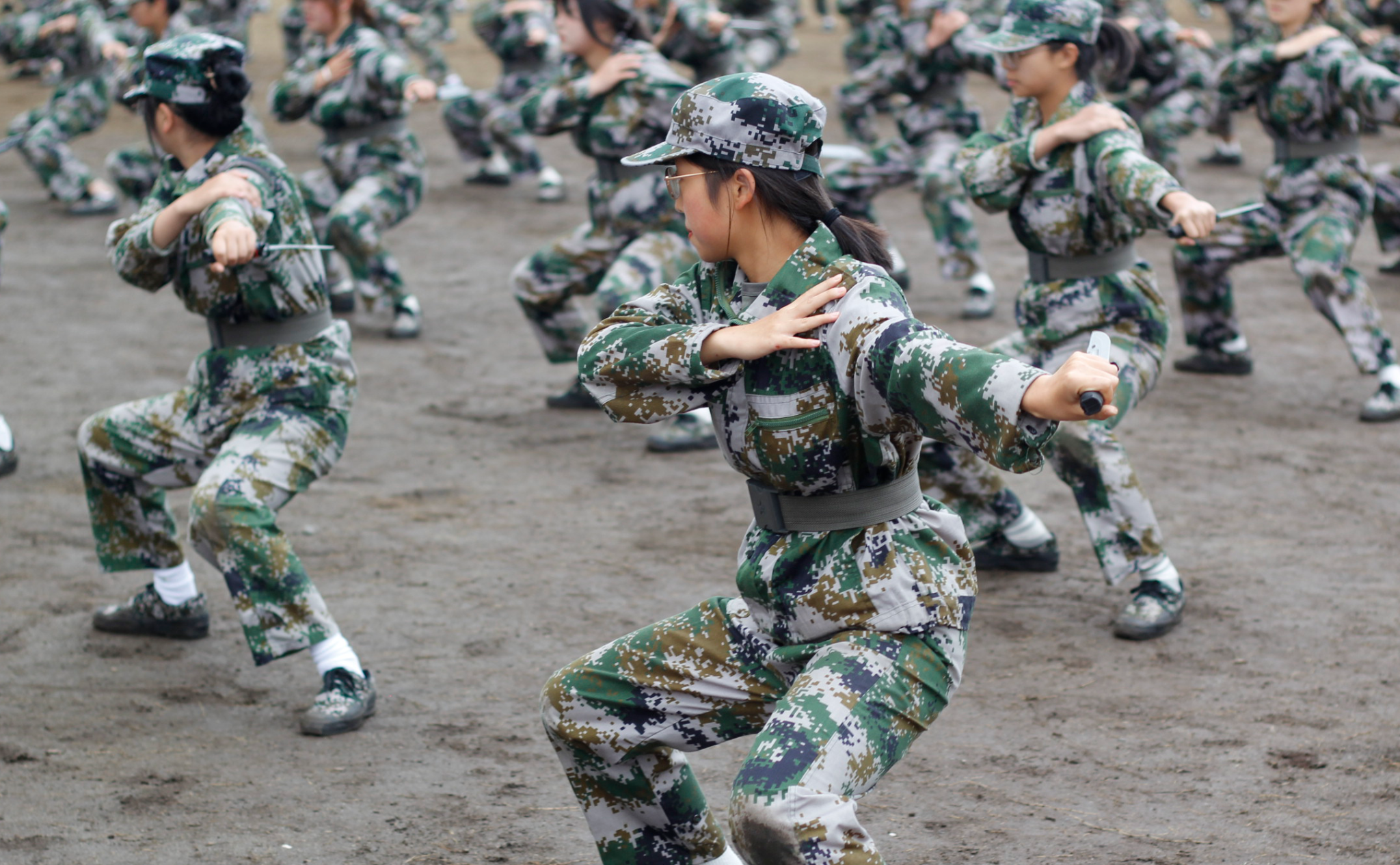 匕首操方队精神抖擞、步履坚定,尽显青春活力和巾帼英姿。擒拿拳演练方队逞英雄豪情,展青春风采,彰显他们逢敌亮剑的胆量和敢打必胜的信念。三声三相方队生动演绎组合的战斗机花式队列栩栩如生,展现着青春的脉络。