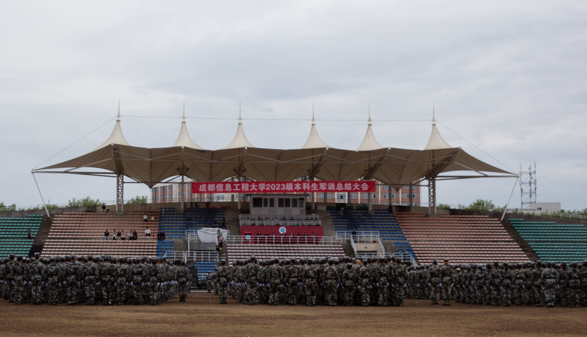 马洪江在总结讲话中代表学校向承训单位全体教官表示崇高的敬意,向投身军训工作的老师们表示感谢,向圆满完成军事技能训练的同学们表示祝贺。他向2023级同学提出殷切期望:一要继续巩固参训成果,传承红色基因,厚植家国情怀,牢记校训精神,胸怀责任担当,做热爱祖国、热爱学校的成信人;二要继续发扬踏实的作风和务实的态度,发扬“尊师、好学、励志、笃行”的学风,做脚踏实地、刻苦钻研的成信人;三要锤炼体魄,养成强身健体的良好锻炼习惯,做英姿飒爽、青春飞扬的成信人。他号召同学们努力培养敢吃苦、会吃苦、能吃苦的意志品质,在“自找苦吃”的过程中迎难而上、不断奋进,收获“甘甜”,以“请党放心,强国有我”的青春誓言和姿态,珍惜韶华、追求梦想、勇于奋斗,争做堪当民族复兴重任的时代新人,为实现中华民族伟大复兴贡献磅礴的青春力量。