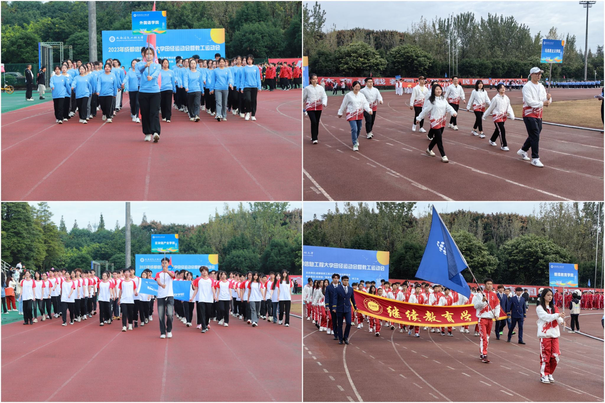 校长何建新开幕式致辞。他代表学校对运动会的胜利召开表示热烈的祝贺,向筹备本次运动会的全体师生表示衷心的感谢。他指出,“体育强则中国强,国运兴则体育兴。”体育承载着国家强盛、民族振兴的梦想。开展校园体育运动,是增强师生员工体质、丰富校园文化内涵的重要举措。体育精神不仅适用于体育赛事,更适用于我们的人生赛场,适用于我们干事创业的全过程。过去十年,学校成功更名大学、获四川省博士学位授予立项建设“优先培育高校”,各项事业不断推进,教学、科研成果丰硕,是全校师生积极参与、团结协作的结果,凝聚着全校师生无私奉献、奋力拼搏的汗水。成信人为学校内涵建设、特色发展的砥砺奋进和追求卓越就是体育精神在大学校园里的最好体现。他号召大家将体育精神融入到学校各项工作,积极主动、齐心协力,顽强拼搏、坚持不懈,携手推进学校的各项事业开创新局面、更上新台阶。