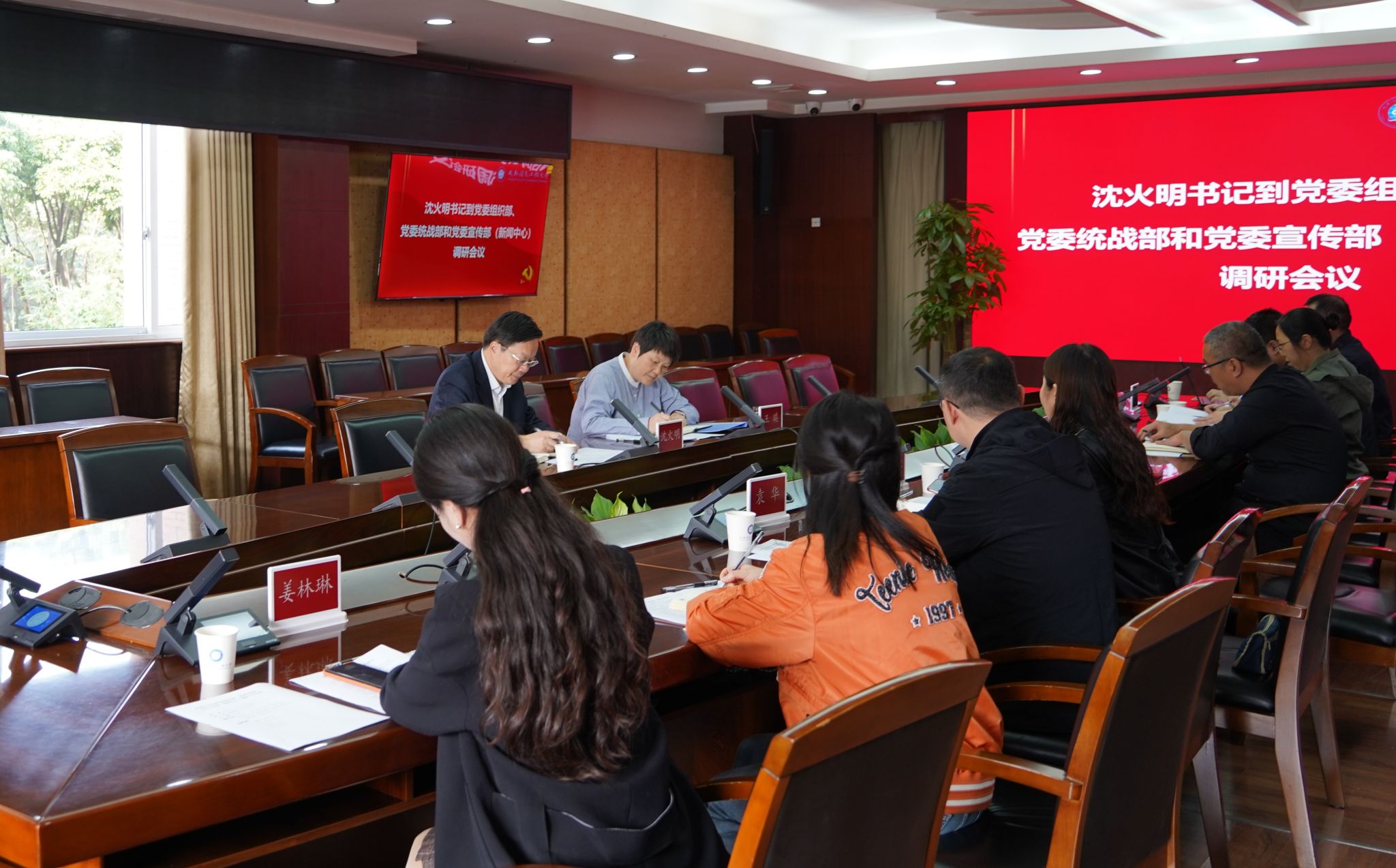 党委组织部、党委统战部、党委宣传部(新闻中心)全体在校人员参加会议。