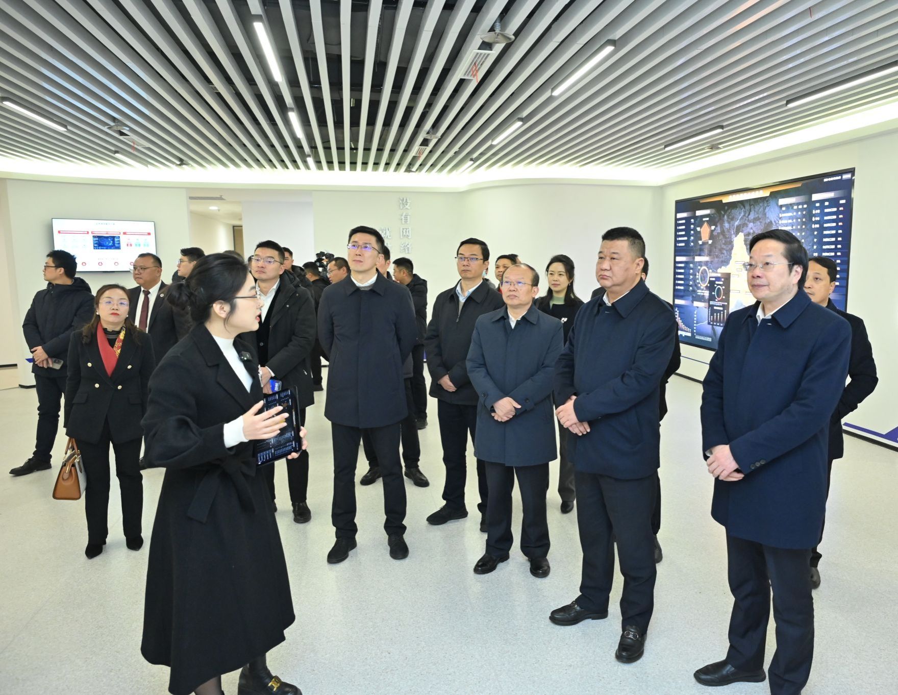 与会领导参观了集成电路产业学院、网络空间安全产业学院、区块链产业学院科研办公区,调研了光学三维传感器工作室、激光大气探测技术实验室、人工影响天气装备研究室、射频毫米波集成电路设计团队、气象信息与信号处理实验室、网络空间安全产业学院成果展厅、先进密码与量子计算团队、网络安全与先进计算团队科研情况。