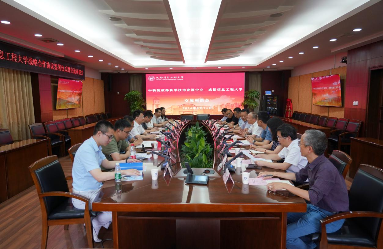 中物院成科中心科技发展处、项目管理中心、大数据中心、传感器与智能装备研究室、能源新材料研究室、数字经济研究室、成果转化与创新体系建设处,乐动科技处(大学科技园管委会办公室)、电子工程学院(大气探测学院)、计算机学院、软件工程学院、网络空间安全学院、光电工程学院、统计学院的主要负责人参加交流座谈。