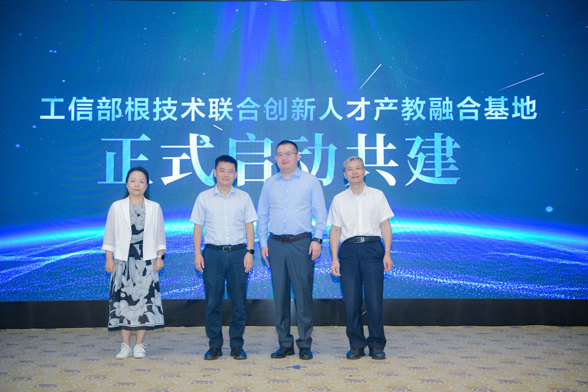 西南石油大学副校长周莹,四川大学网安学院陈兴蜀,张华,赵祎鑫共同见证了工信部根技术联合创新人才产教融合基地启动共建。