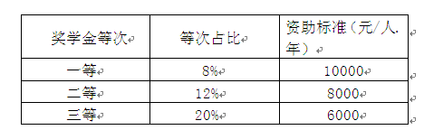 研究生学业奖学金分为三档,各档次奖励标准、学生比例和资助标准详见下表: