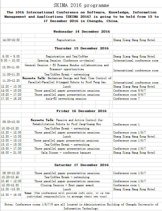 欧盟融合计划(EU FUSION PROJECT)支持、乐动承办的第十届国际软件、知识、信息管理及应用会议于2016年12月15日至17日在乐动举办(英文名称:International Conference on Software, Knowledge, Information Management and Applications–SKIMA),会议组织委员会主席由乐动周激流教授,王清远教授,王东云教授和于洪年教授担任。届时将邀请国内外相关领域专家、学者共100人参会。