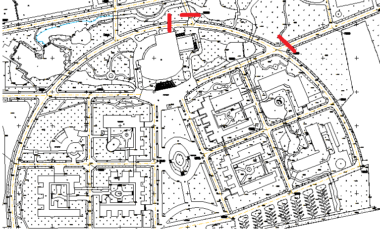 电子工程计算机实验中心室外工程施工,需要从图书馆消防系统接入管道至电子工程计算机实验中心。将于2017年10月10日至2017年10月15日对下图红线所示三个位置道路进行破除。10月10日至10月13日上班时间车辆可以通行,请减速慢行注意安全;10月13日晚上至10月15日车辆不能通行,10月16日恢复通行。