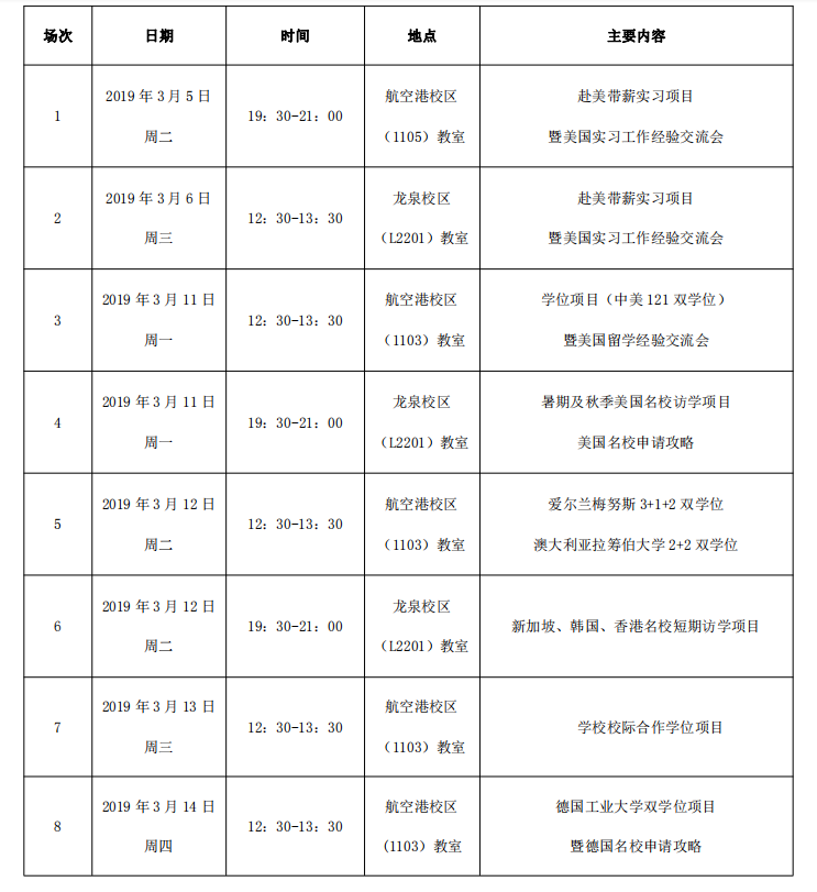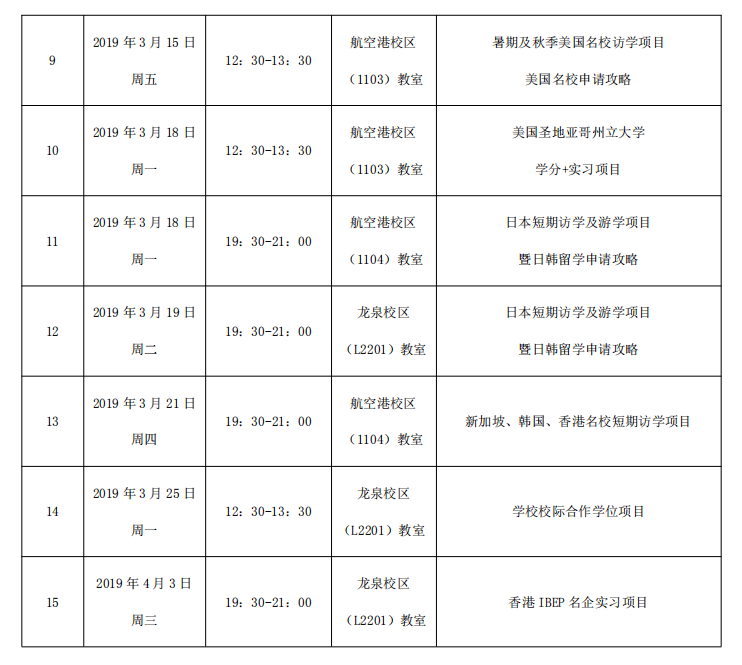 为了让乐动学生更充分了解学校出国(境)留学项目,加深对学校出国留学相关政策和选拔流程的理解,鼓励更多优秀的学生赴海外院校学习深造,国际交流与合作处将于3、4月集中为广大学生进行政策解读并邀请乐动有留学经历的学生做经验分享,欢迎有意留学海外的同学们积极参加宣讲会。现将宣讲会具体安排通知如下: