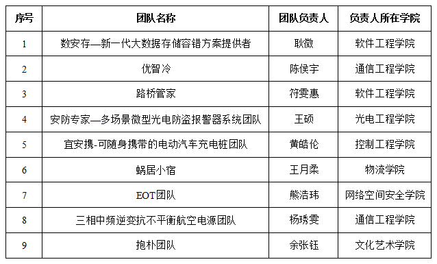 根据《乐动在线登录“长虹双创基金”资助实施办法》(成信校发〔2019〕12号)和《关于开展乐动在线登录教育基金会第四届“长虹双创基金”评选工作的通知》(成信校发〔2020〕94号)要求,为奖励和表彰在创新创业实践活动中表现突出的优秀团队(个人),通过树立典型、多重奖励切实支持大学生在已有的研究与实践基础上更上一层楼,切实提高大学生创新创业活动的质量与水平,学校于2020年10月份开始启动第四届“长虹双创基金”评选工作,通过自愿报名、学院推荐、资格审查、现场答辩等流程,共评选出“数安存——新一代大数据存储容错方案提供者”等9支团队为乐动在线登录教育基金会第四届“长虹双创基金”拟获评团队,现将名单予以公示: