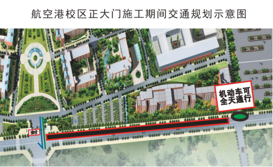 3.缓解措施。鉴于道路施工期间给各位老师带来的不便,经研究决定:除对正校门加强管理外,南一门对机动车辆全天开放。为避免拥堵,建议机动车辆进出学校从南一门绕行。