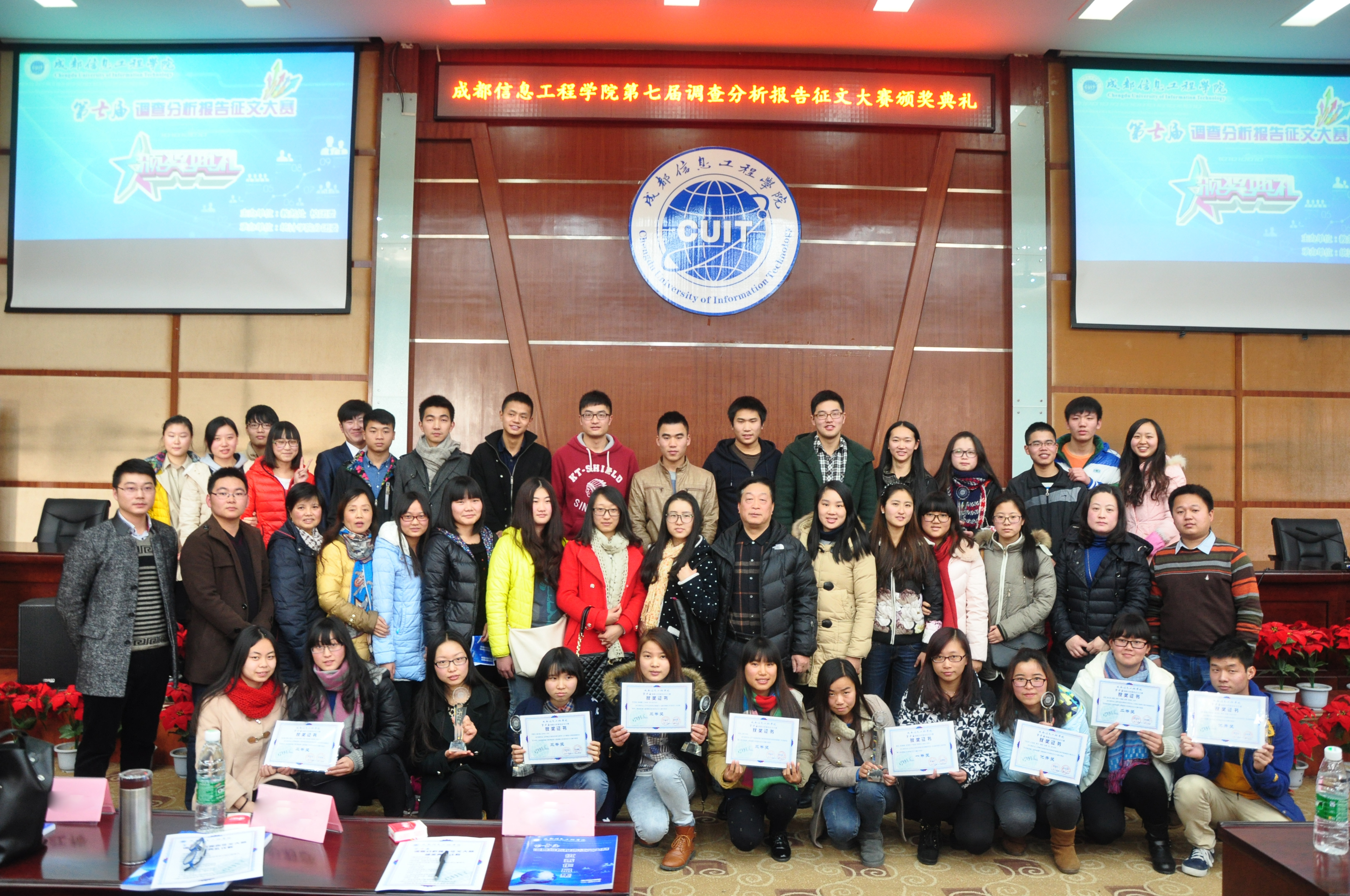【本网讯】 成都信息工程学院第七届调查分析报告征文大赛颁奖典礼于12月19日下午2:00在乐动龙泉校区学术报告厅顺利举行。统计学院党总支书记刘全教授、校团委胡敏老师、统计学院彭莉莎教授、龙泉校区各学院分团委书记、统计学院辅导员老师出席参加了此次颁奖典礼。