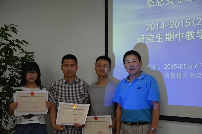 【本网讯】信息安全工程学院2014-2015学年度第二学期研究生期中教学检查座谈会于5月7日上午在三会议室举行。信息安全工程学院党总支书记许鸿涛、副院长张仕斌、研究生导师、授课教师代表、研究生辅导员以及2012级、2013级、2014级研究生全体同学参加了座谈会。