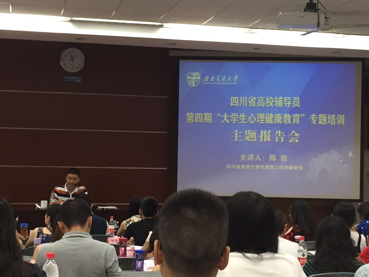 【本网讯】6月14日—18日,四川省高校辅导员第四期“大学生心理健康教育”专题培训在西南交通大学九里校区逸夫馆举行,乐动电子工程学院辅导员刘韵老师参与了此次培训。