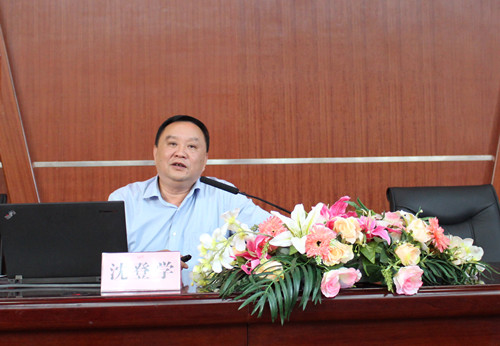 开学典礼第二阶段是管理学院副院长沈登学教授主讲的入学第一课——“阳光心态,开启崭新的大学生活”。他围绕大学生活的适应与定位、阳光心态与心理适应、如何开始大学新生活三个方面的内容,给新生的生活、学习和职业生涯规划提出建议,希望树立阳光心态的意识, 了解大学生定位,调整心态,快乐学习,超越自我。