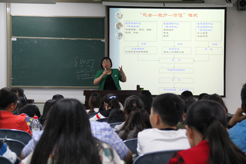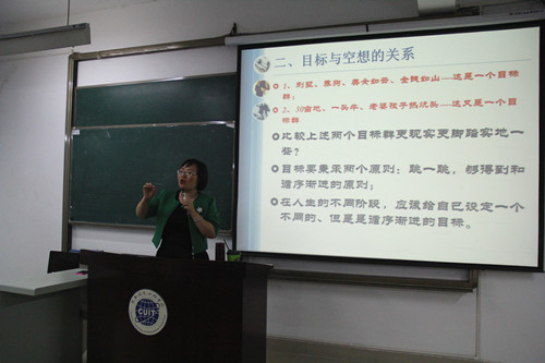 陈静副教授围绕着“如何树立一个科学的目标和规划好职业发展方向”这个主题,为大家详细的讲解了大学生应该怎样理性的认识和评价自我特点和强项,并向同学们提出毕业时选择考研、就业、还是创业的问题,引发同学们的深入思考。