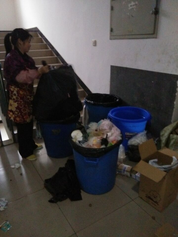学生公寓管理中心在各楼栋外安放垃圾桶,并设置温馨提示牌。通过近期的倡导、实践,大部分同学逐渐养成了主动携带垃圾下楼的良好卫生习惯。楼道卫生有了较大的改善,宿舍整体环境得到了提升,同时,一线保洁人员的工作负担得到了减轻。