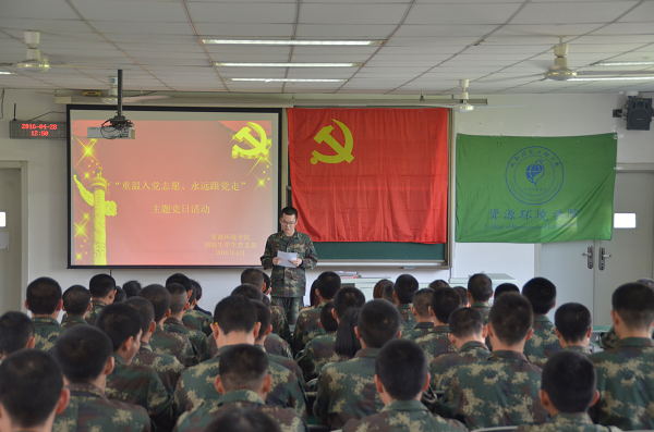根据中央、省委、省委教育工委关于在全体党员中开展“学党章党规、学系列讲话,做合格党员”相关文件精神和校党委《关于在全校党员中开展“学党章党规、学系列讲话,做合格党员”学习教育的实施方案》要求,4月28日,资源环境学院国防生党支部组织全体党员开展“重温入党志愿、永远跟党走”主题党日活动。学院党总支书记李蕖及相关负责老师参加了此次会议。
