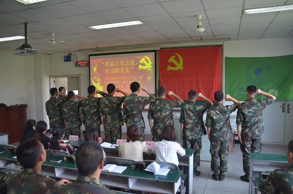 会议伊始,全体党员重温誓词:“我志愿加入中国共产党,拥护党的纲领,遵守党的章程,履行党员义务”。重温当初入党时的真诚和激情,表明正确的入党动机,进一步坚定理想信念,增进对党的感情,充分发挥全体党员的先锋模范作用,永葆党的先进性和纯洁性。李蕖书记说:“做一名合格的国防生,做一名合格的党员都需要我们时刻铭记在心”。