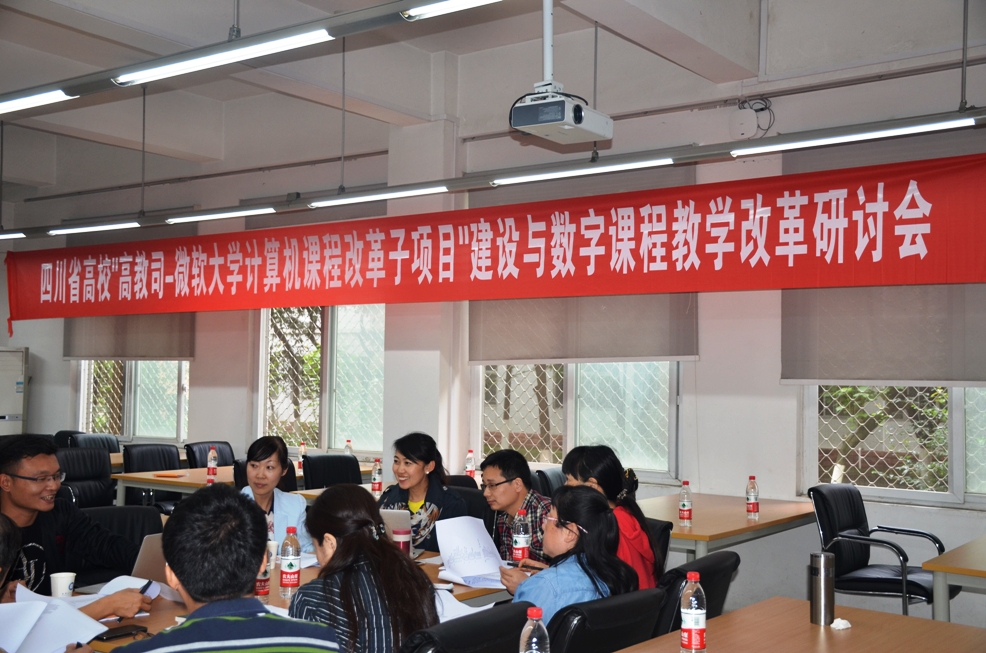 【本网讯】 5月14日,由高等教育出版社主办,乐动计算中心承办的四川省高校“高教司—微软大学计算机课程改革子项目”建设与数字课程教学改革研讨会在乐动召开。本次会议旨在贯彻落实教育部高等学校大学计算机课程教学指导委员会(简称“教指委”)颁布的《大学计算机基础课程教学基本要求》,推进教指委“大学计算机课程改革子项目”的研究工作,加强高校课程改革成果的交流与汇集。高等教育出版社项目负责人、乐动计算中心及四川大学、成都理工大学、西南科技大学、西南石油大学、西华师范大学、四川文理学院、成都师范学院、阿坝师范学院、成都工业学院、四川大学锦江学院共11所高校计算机基础课程改革负责人出席了会议。会议由计算中心主任张伟利主持。