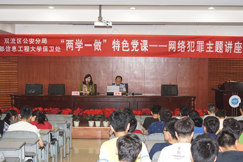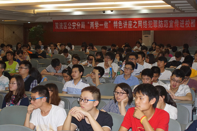 按照乐动深入开展“两学一做”提出的明确要求,结合近期网络犯罪案件高发,甚至有部分大学生参与到网络犯罪活动中的实际情况,学校保卫处与成都市公安局网监大队、双流区公安分局联手为计算机学院、信息安全学院近200名学生作了一场别开生面的特色党课——网络犯罪主题讲座。