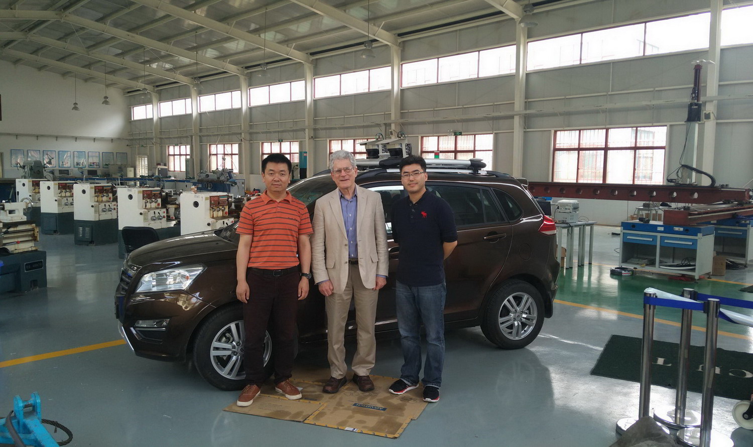 随后,参观了学院自主研发的无人驾驶车,对学院的科研成果给予肯定, 并给出了前瞻性和建设性的意见。