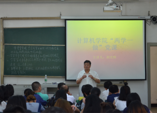 本次党课由胡光辉老师主讲,计算机学院全体党员师生参加此次活动。本次党课主要围绕“学党章党规、学系列讲话,做合格党员”为主题展开学习与讨论。