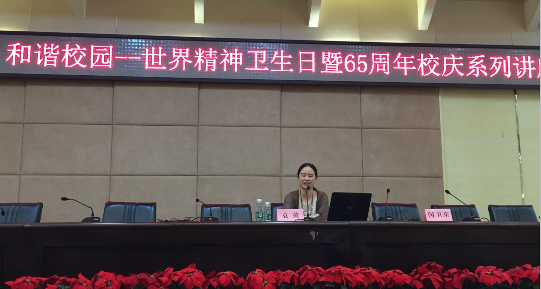 【本网讯】10月9日-10日,由学生工作处主办的学校“世界精神卫生日”暨65周年校庆系列讲座之“关爱心灵,和谐校园”分别在龙泉校区和航空港校区顺利举行。讲座邀请了成都市第四人民医院临床心理科袁茵主任主讲。心理健康教育中心专兼职老师,各学院负责心理健康教育工作的辅导员,新生辅导员和班级心理委员到场聆听了讲座。讲座由学生工作处副处长闵卫东主持。