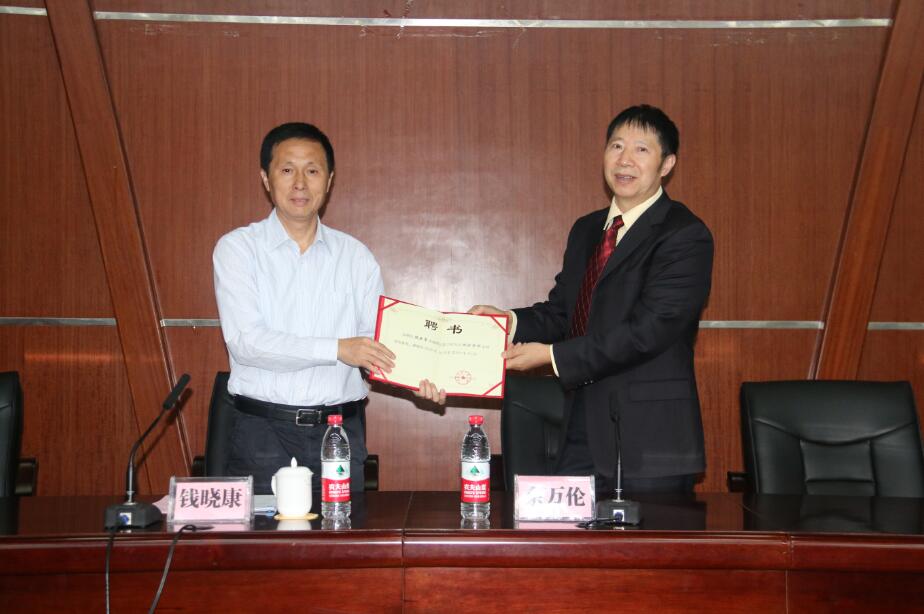 余万伦代表学校特聘钱晓康为统计学科客座教授,并颁发特聘证书。