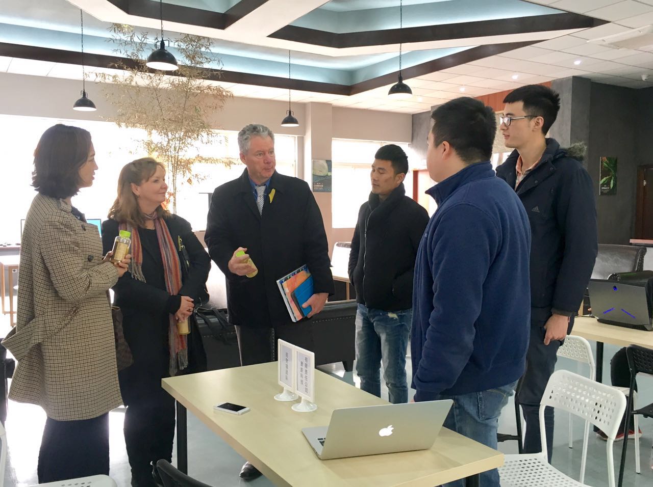 会上,段黔冰向来访客人表示热烈欢迎。陈敏介绍了乐动大学生创新创业项目、学分课程等基本情况,以及学生获得专利和受资助情况。宋波介绍了乐动大学科技园、成都研究院、成创空间的情况,并列举数个通过乐动平台孵化的企业成功案例,介绍了成创空间的运营模式和成果。Dr. Claire McGowan对乐动成创空间展现出浓厚的兴趣,就宋主任介绍的情况展开了进一步讨论。随后,Tony O’Brien介绍怀卡托理工学院在大学生创新创业方面开展工作情况,双方就合作方向和模式进行讨论,为后续合作奠定了基础。